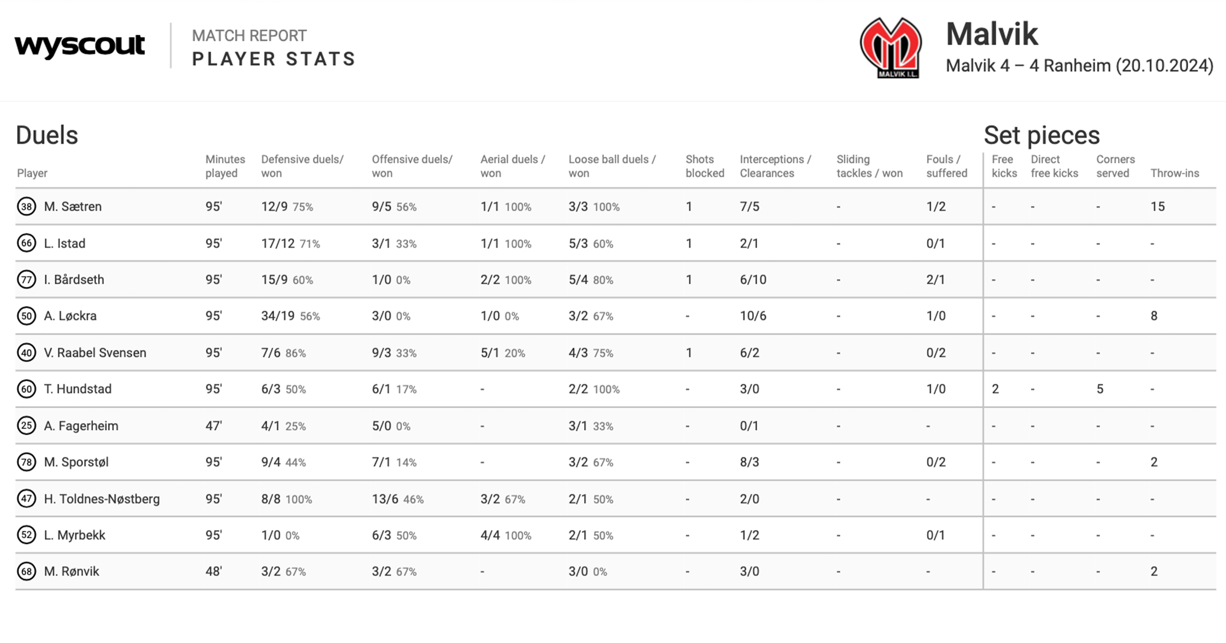 “It's great to have the report to rely on because the report is facts, not feelings. It’s not the feeling that we thought we, for example, had the ball 70% of the time. We can actually check this as fact in our Wyscout report.