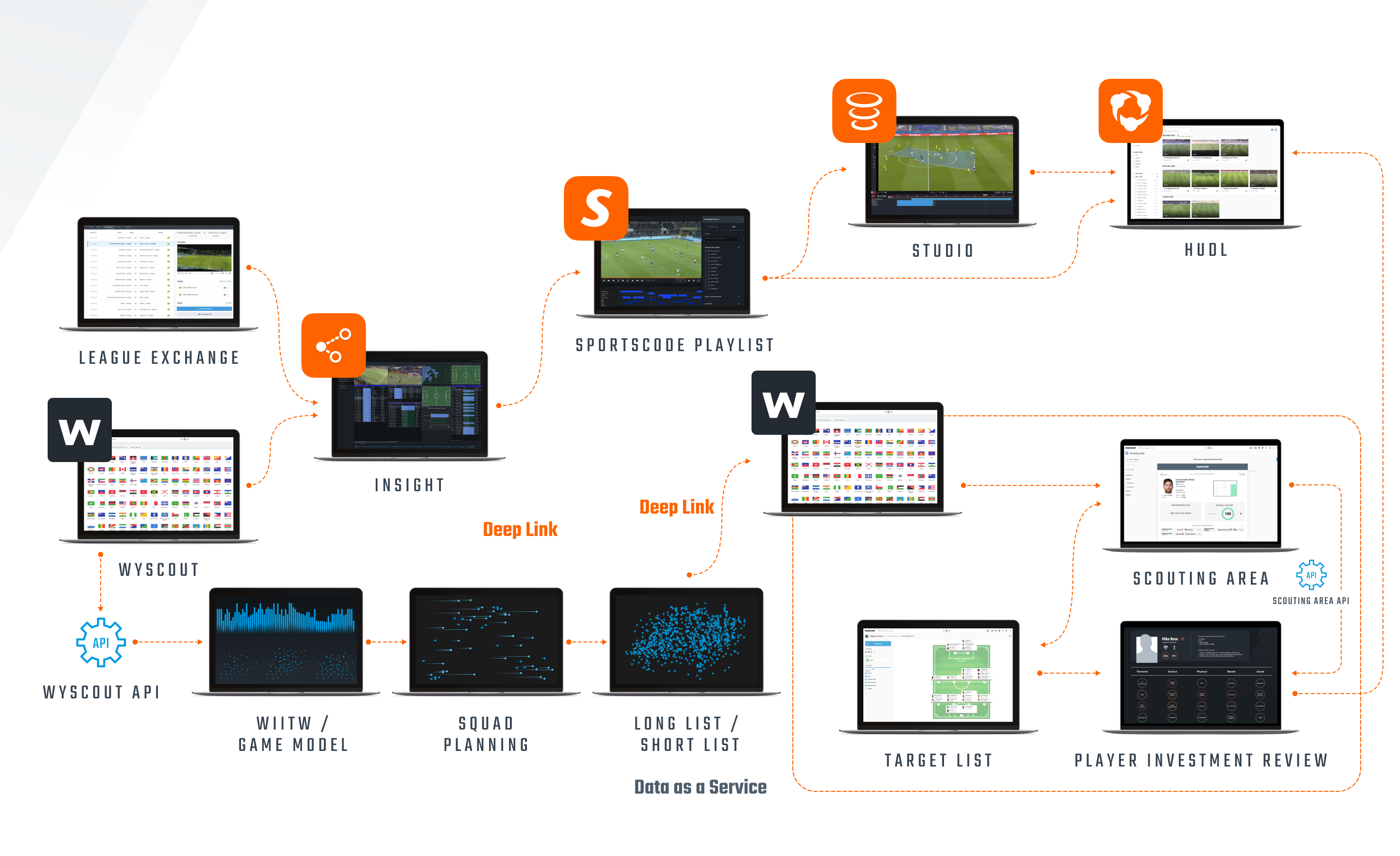 To recap, the scouting and recruitment High Performance Workflow starts with Data as a Service to identify team goals, playing style and succession planning to narrow down the specific player profile, before moving into Insight to use data to make the video analysis stage much quicker.