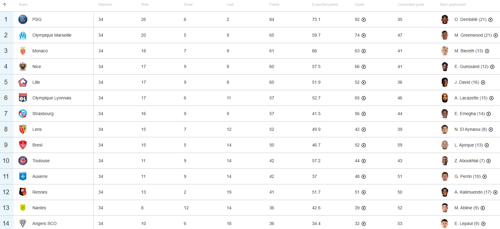 Despite the high turnover in players, Rosenior has been able to draw from a consistent core. Indeed, Strasbourg have made the fewest substitutions in Ligue 1 this season (131), demonstrating not only the cohesion and continuity in the squad, but the benefits of signing young, fit, and durable players who are regularly available.